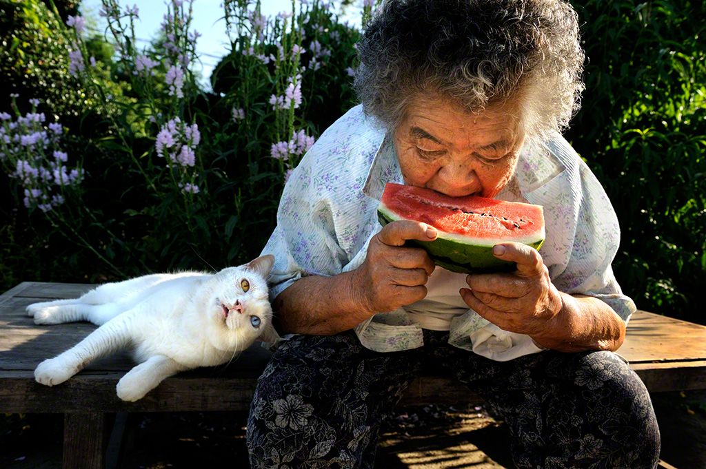 Misao et Fukumaru, recueil de photographies du quotidien attendrissant d’une vieille dame qui travaille tous les jours aux champs et de son chat Fukumaru, est aujourd’hui un best-seller. C’est l’œuvre de la photographe Ihara Miyoko (30 ans), qui vit sous le même toit que Misao, sa grand-mère. Ce recueil est né du souhait d’Ihara Miyoko de « garder une trace de la vie de sa grand-mère ». En 2003, alors qu’elle photographie Misao depuis trois ans, la famille s’enrichit de Fukumaru, un chaton blanc abandonné dans la grange des Ihara par une chatte errante. Depuis ce jour, Ihara Miyoko se consacre à capturer des images de ces deux membres inséparables de la famille.
