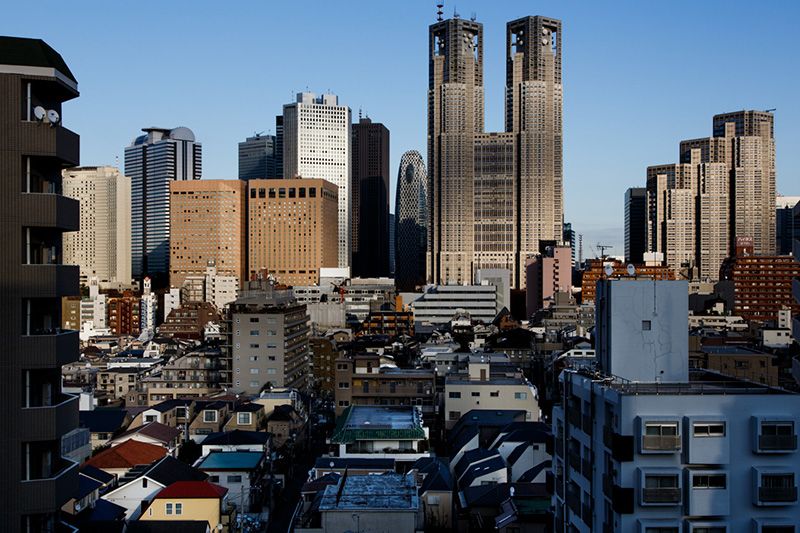 Le paysage urbain de Shinjuku, où les gratte-ciel côtoient les maisons traditionnelles. (10 janvier 2013)