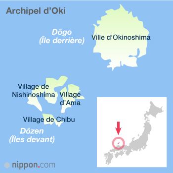 Nakanoshima, l’île où se trouve Ama, n’a que 89 kilomètres de circonférence et il faut trois heures en ferry pour s’y rendre depuis la terre. Du fait de cette difficulté d’accès, le site naturel est resté intact et les paysages sont de toute beauté. L’île a servi de lieu d’exil pour nombre de prisonniers politiques, dont certains étaient des aristocrates. L’empereur Go-Toba, qui était de ce nombre, a composé quantité de poèmes waka au cours des 19 années qu’il a passées sur l’île après avoir perdu la guerre de Jôkyû contre le shogunat de Kamakura en 1221.