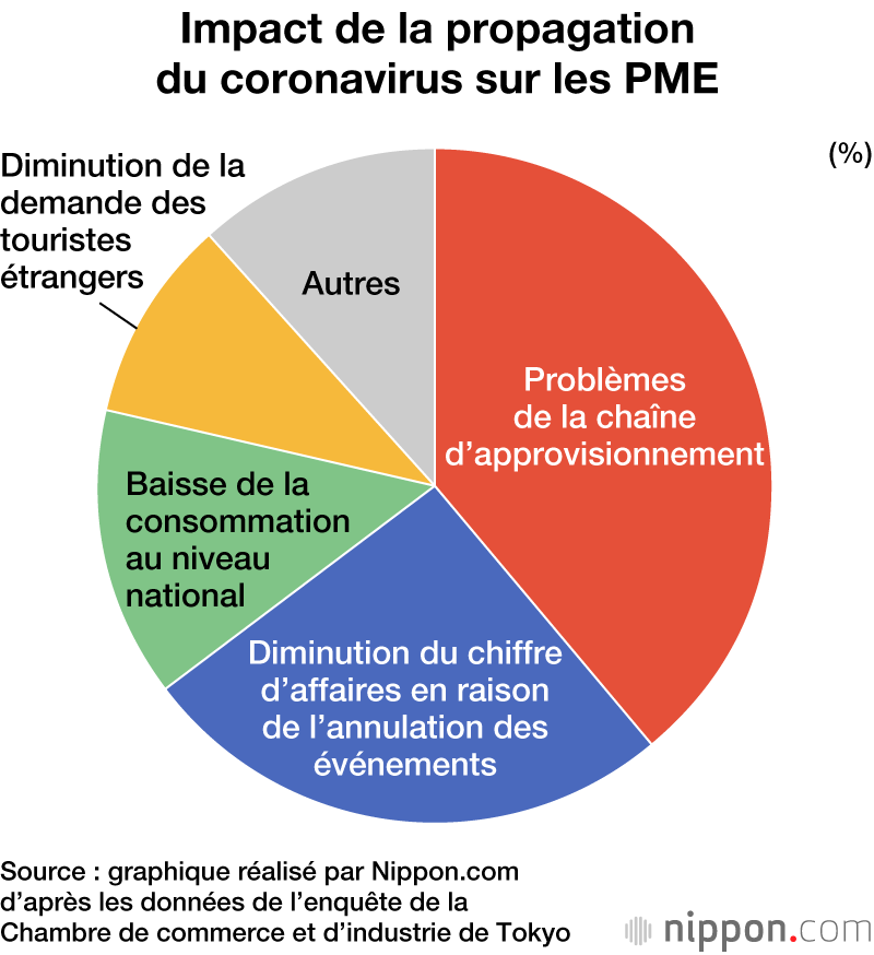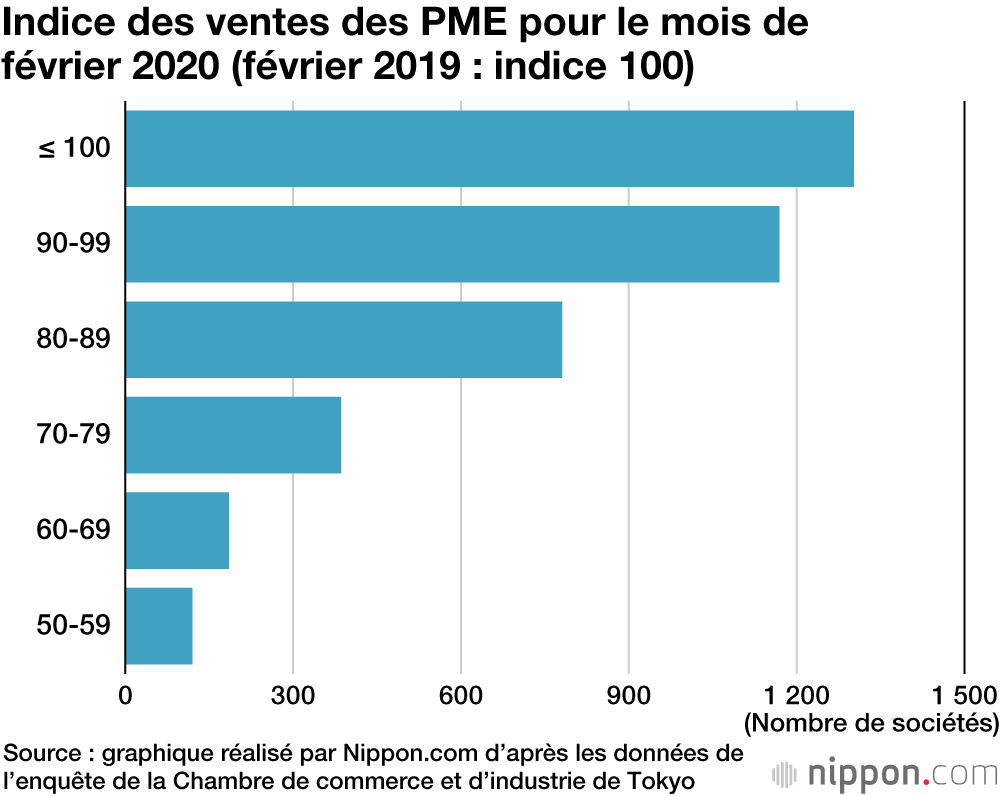 Les entreprises ayant fait faillite en raison du Covid-19 étaient au nombre de 17 au 30 mars. Parmi les secteurs visés, les auberges japonaises (ryokan) touchées par la diminution de la clientèle chinoise, les sociétés de gestion de navires de croisière, les agences de voyage et les restaurants de sushi, entre autres. L’enquête de la Chambre de commerce analyse et prévoit que « le nombre de faillites va inévitablement progresser à l’avenir. Et pour les petites et moyennes entreprises déjà confrontées au problème de leur succession, ce sera pour certaines le moment de fermer leurs portes. «