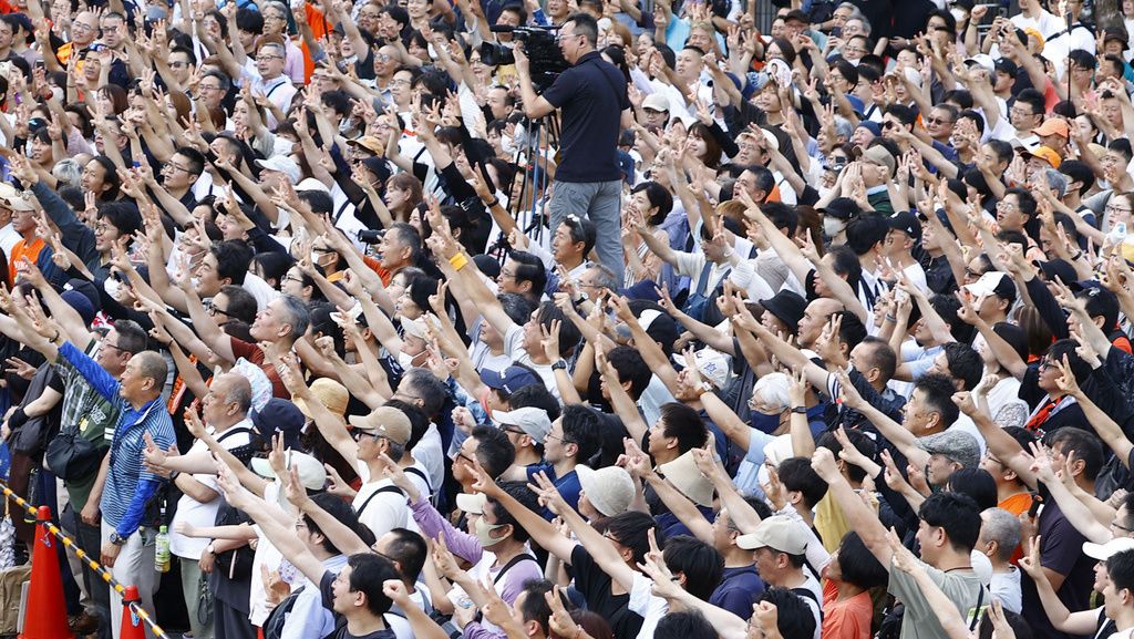 (Photo de titre : des partisans du Sanseitô lors d’une allocution en pleine rue, le 19 juillet 2025 à Yokohama. Kyôdô)