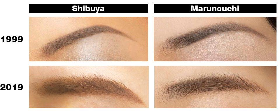 Si les tendances de maquillage diffèrent selon les âges entre Shibuya et Marunouchi, il est intéressant de noter que les sourcils, eux, sont sensiblement les mêmes d’un quartier à l’autre. On peut donc penser qu’ils sont révélateurs d’une époque.