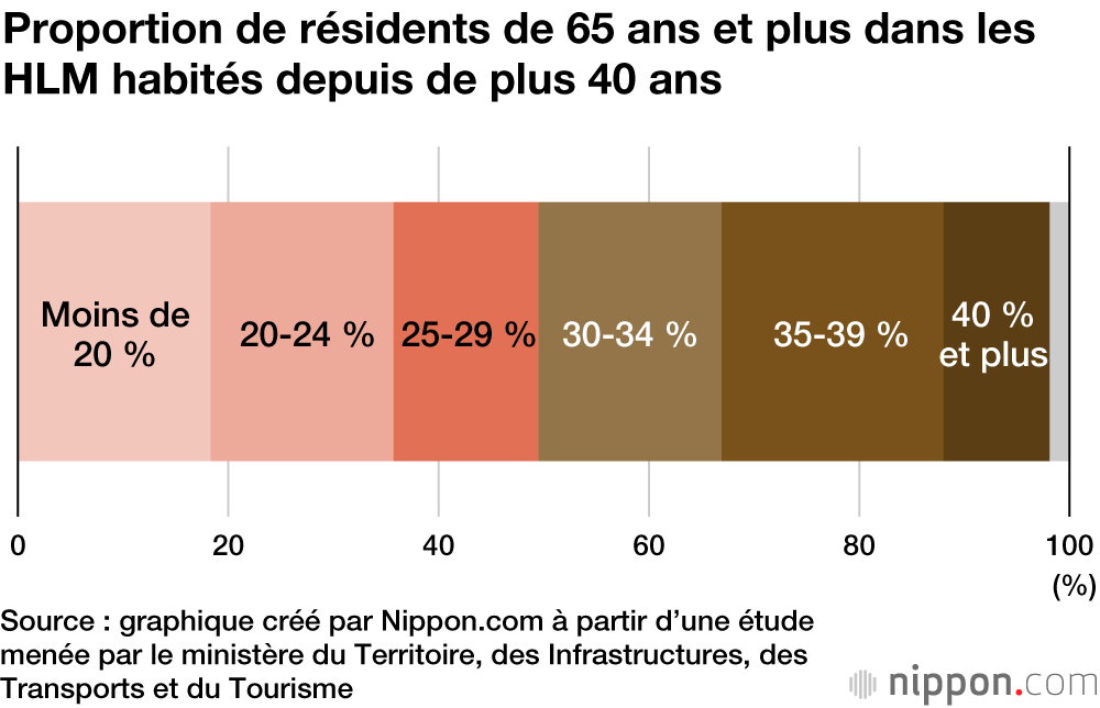 Selon une étude menée par le ministère du Territoire, des Infrastructures, des Transports et du Tourisme, 22,2 % des HLM, ou danchi, sont habités depuis plus d’une quarantaine d’années et sans doute même plus, car l’âge de certains de ces bâtiments est parfois incertain. Par ailleurs, presque un résident sur trois a plus de 64 ans, ce qui est supérieur au pourcentage de séniors par rapport à l’ensemble de la population de l’Archipel, où ils représentent 26,6 %.