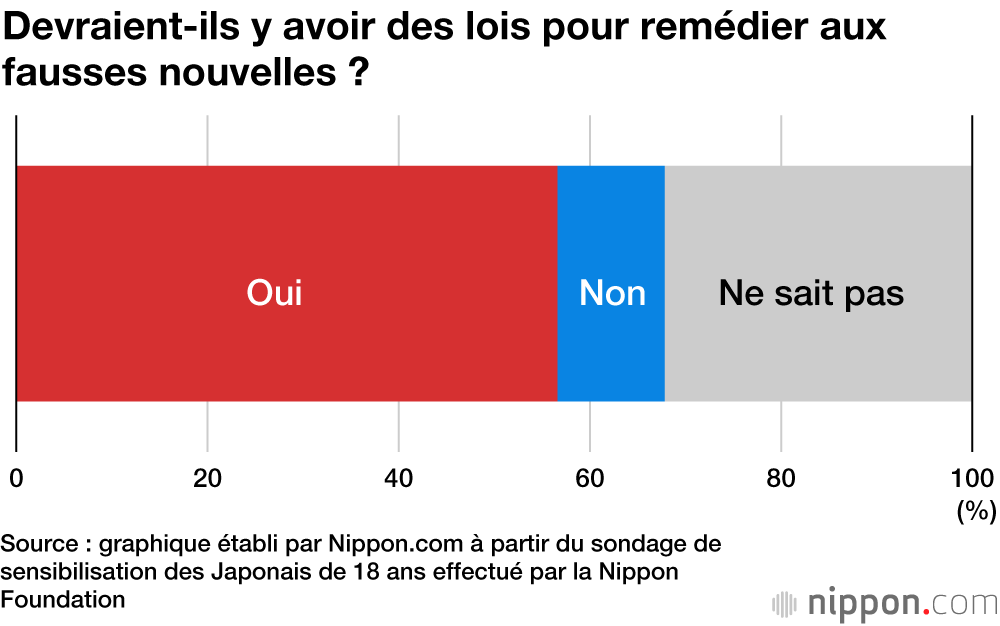 Lorsqu’on leur a demandé s'ils avaient déjà douté de la fiabilité des informations sur la toile, 84,1 % des répondants ont avoué s’être parfois posé des questions, et 56,6 % ont déclaré que des lois étaient nécessaires pour remédier aux fake news. Parmi les raisons évoquées, citons la possibilité pour des fausses informations de porter atteinte aux droits de la personne, de provoquer des perturbations sociales ou de répandre des propos diffamatoires.