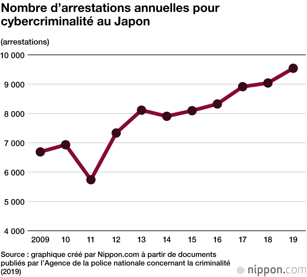Selon les données provisoires de l’Agence nationale de la police, les forces de l’ordre nippones ont mis à jour un record de 9 542 affaires de cybercriminalité en 2019, soit une hausse de 5,6 % par rapport à l’année précédente. La prolifération des smartphones et autres appareils électroniques n’est pas sans risque pour les consommateurs : gare aux virus informatiques et aux vols de données personnelles.