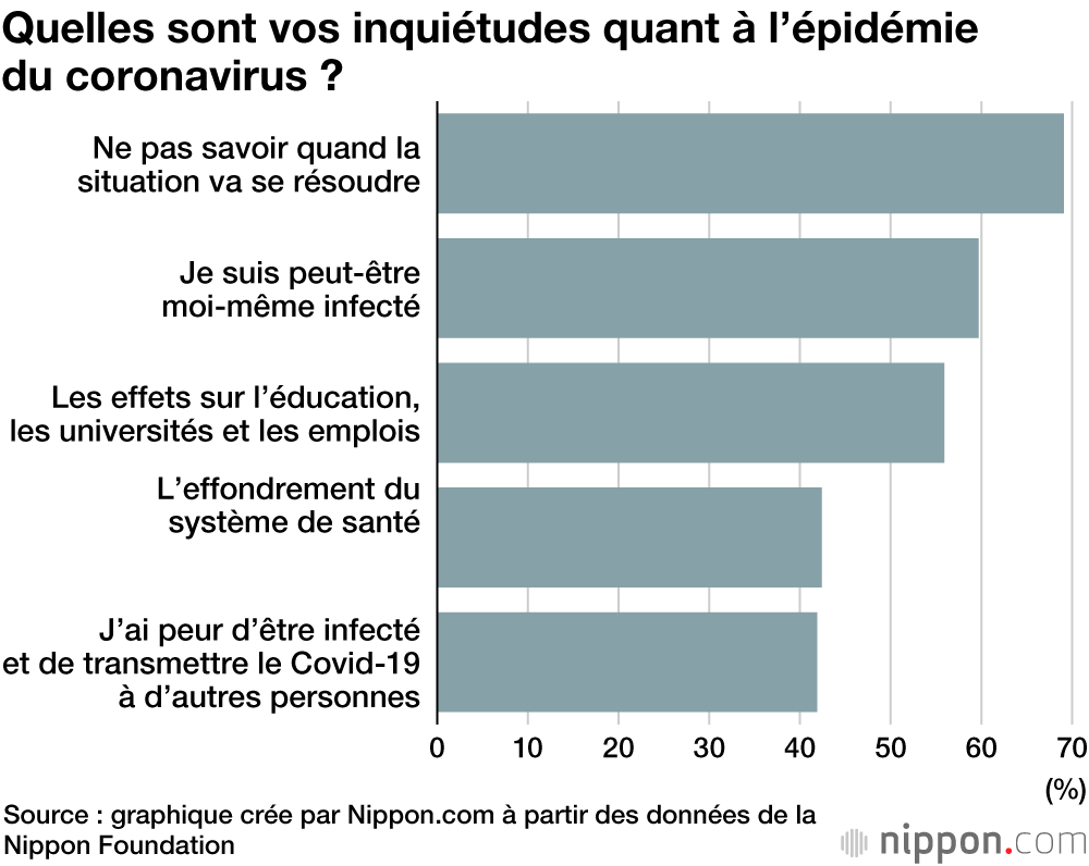 À la question « Quelles sont vos inquiétudes quant à l’épidémie du coronavirus ? », la réponse la plus donnée, à 69,1 %, était l’incapacité à savoir quand la situation allait se résoudre.