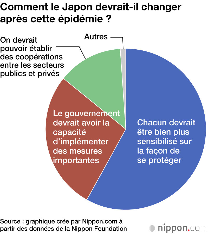 À la question « de quelle façon le Japon devrait-il changer une fois que la situation redeviendra normale ? », plus de la moitié des sondés ont répondu que les gens devraient chacun mieux comprendre comment se protéger.