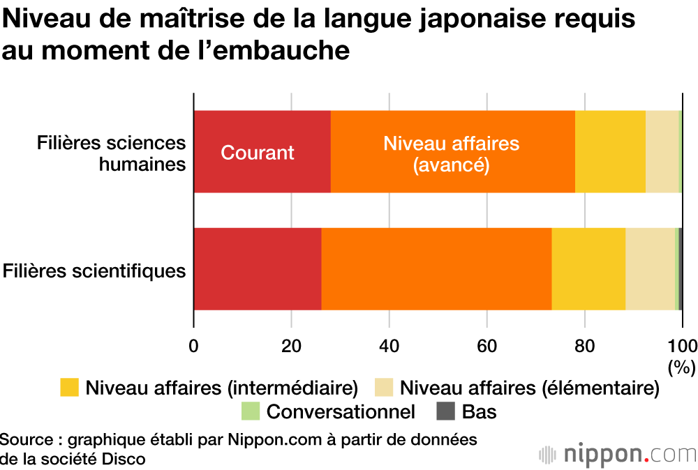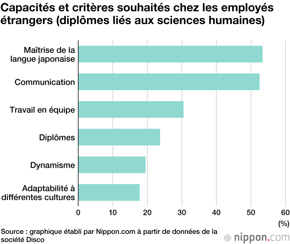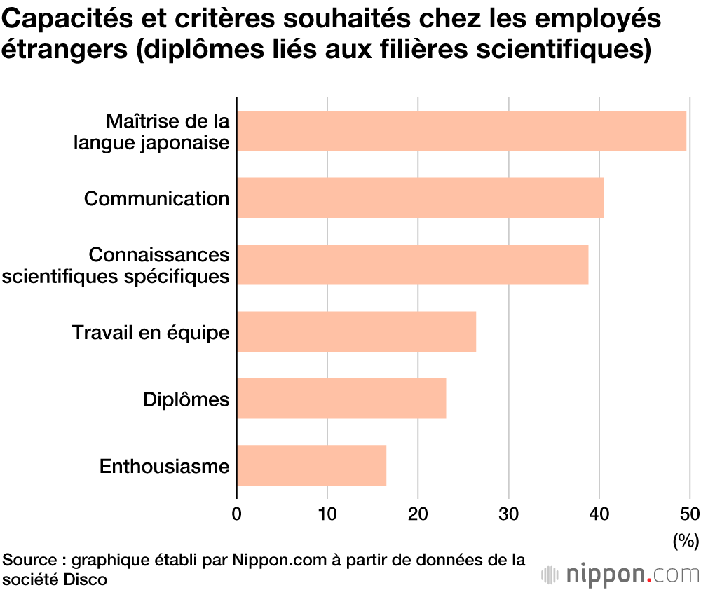 D’autre part, parmi les critères souhaités figuraient la « maîtrise de la langue japonaise », des « compétences en matière de communication » et la « capacité à travailler en équipe ».