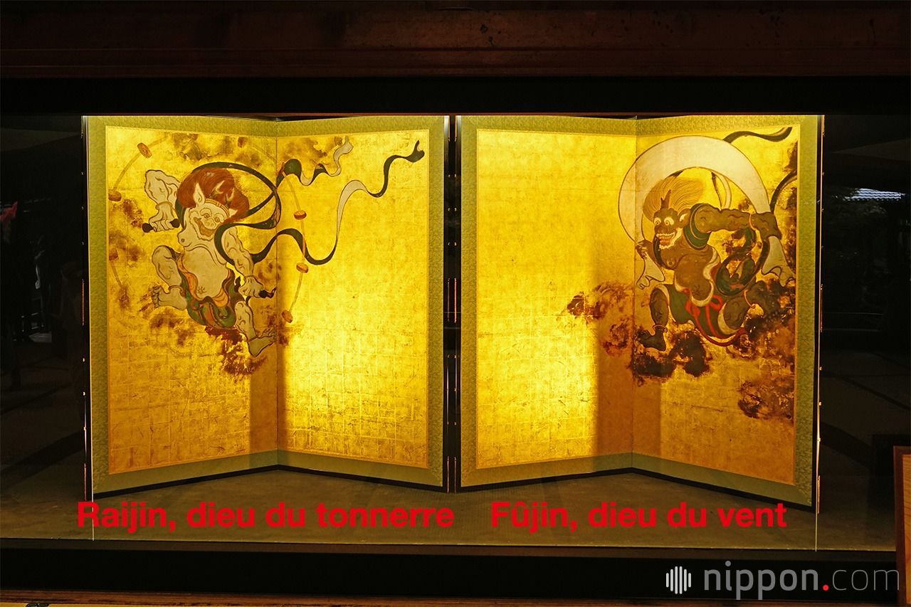 Les deux paravents Fûjin Raijin zu au temple Kennin-ji, à Kyoto Il s’agit d’une réplique, car l’original, désigné trésor national, est conservé au Musée national de Kyoto. Pixta.