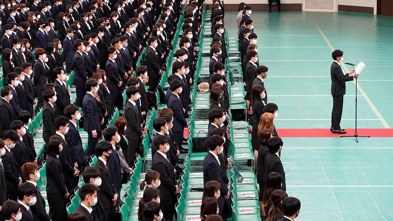 (Photo de titre : la cérémonie d’entrée à l’Université Senshû en 2021, qui s’est tenue pour les étudiants de première et seconde année au Budôkan à Tokyo, le 5 avril 2021. La cérémonie de l’année précédente, en avril 2020 avait été annulée en raison de la pandémie de Covid-19. Jiji)