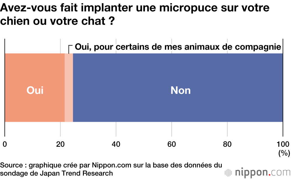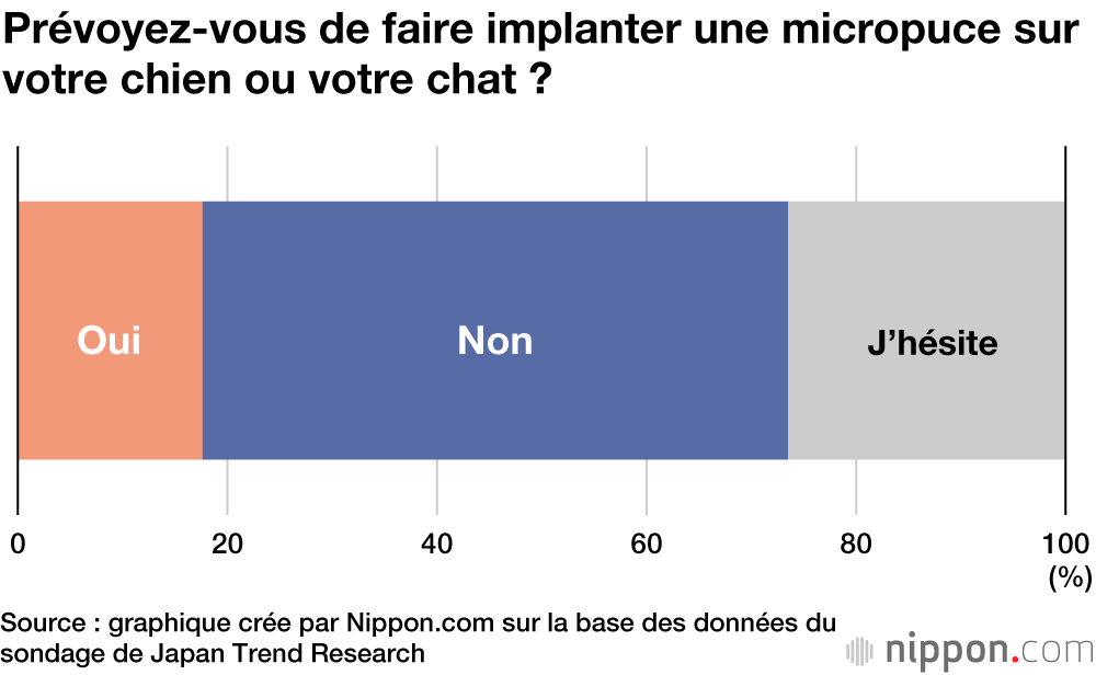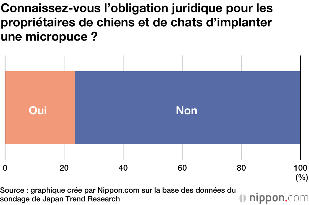 Une enquête en ligne effectuée auprès de 2 000 personnes par Japan Trend Research, société gérée par Nexer, a révélé une méconnaissance de la loi amendée, avec 76,3 % des répondants mentionnant qu’ils ne connaissaient cette nouvelle obligation d’implanter une micropuce sur les chiens et les chats.
