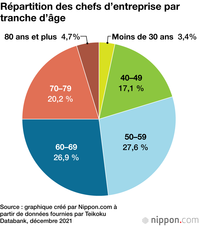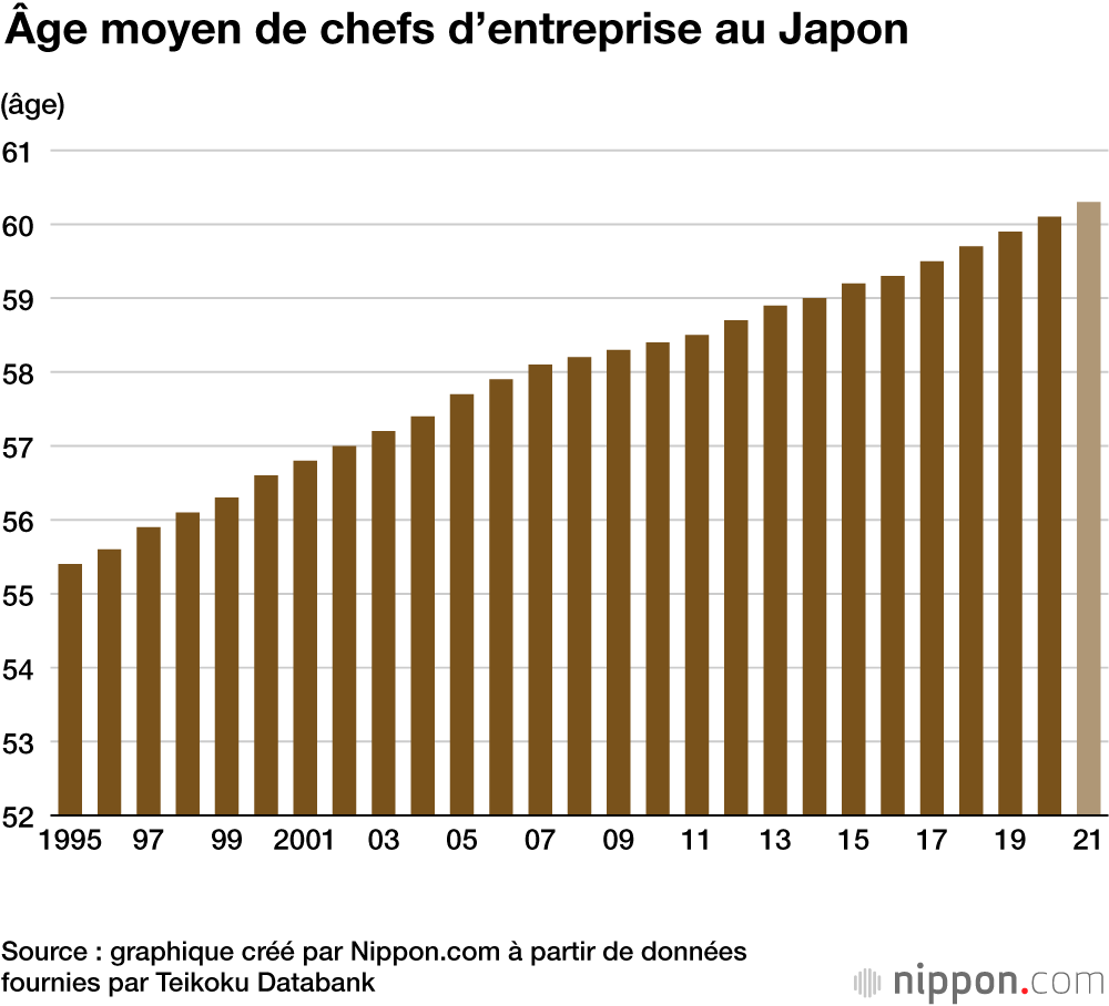 Un sondage de Teikoku Data Bank, un grand institut japonais de recherche sur le crédit, a révélé que l’âge moyen des chefs d’entreprises au Japon était de 60,3 ans en décembre 2021, indiquant une augmentation constante depuis le chiffre de 54 ans lors de leur premier sondage en 1990.