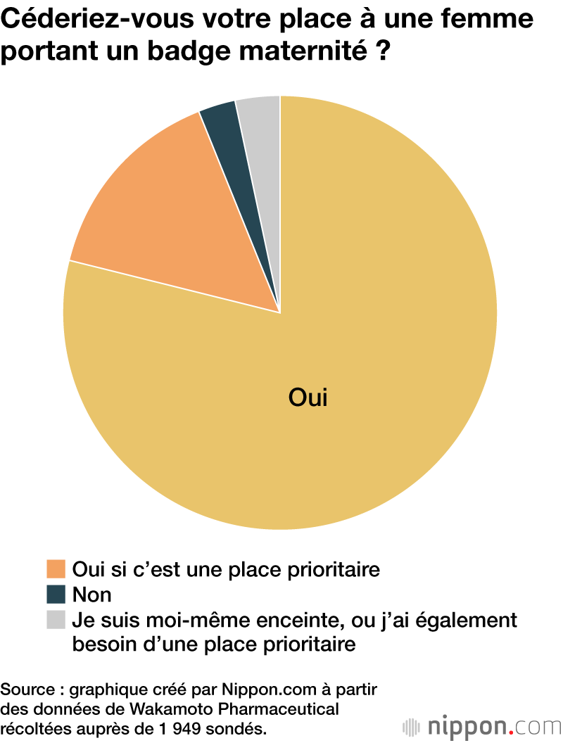 L’enquête révèle que 54,9 % des personnes interrogées avaient déjà cédé leur siège à une femme enceinte. Outre ceux qui cèdent « toujours leur place à quelqu’un qui en a besoin », de nombreux autres motifs étaient liés à des signes visuels facilement compréhensibles, tels que : « la présence d’un badge maternité », « un ventre rond » et « une difficulté à se tenir debout ».