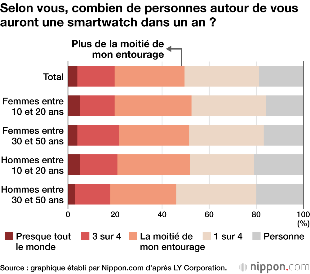 Selon une enquête menée par LY Corporation à la mi-novembre 2023 et ciblant 2 108 utilisateurs de l’application de messagerie LINE, 94 » des répondants savaient ce qu’était une montre connectée, mais seulement 19 » d’entre eux en possédaient une.
