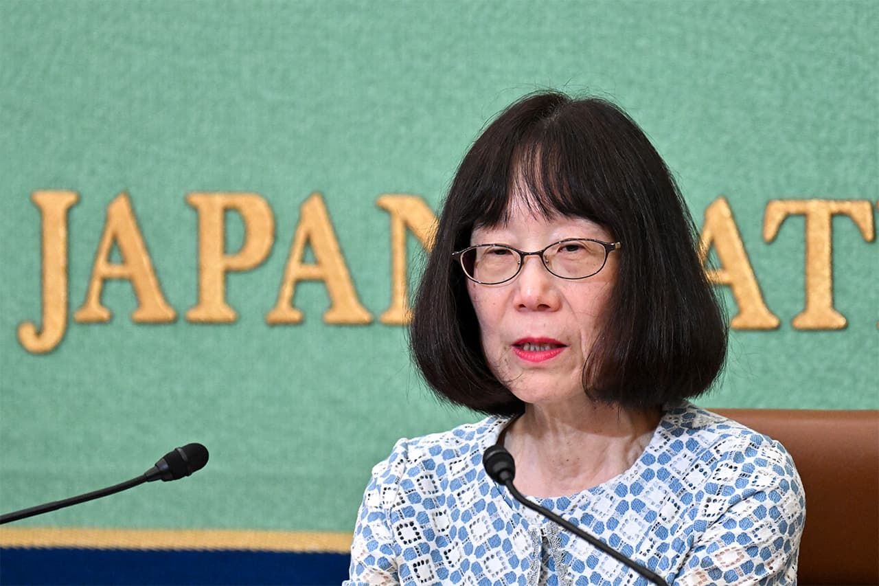 Akane Tomoko, présidente de la Cour pénale internationale, à l’occasion d’une conférence de presse au Japan National Press Club le 14 juin (© Jiji)