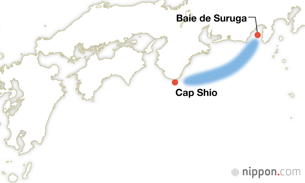 Zone épicentrale : de la baie de Suruga au large du cap Shio.