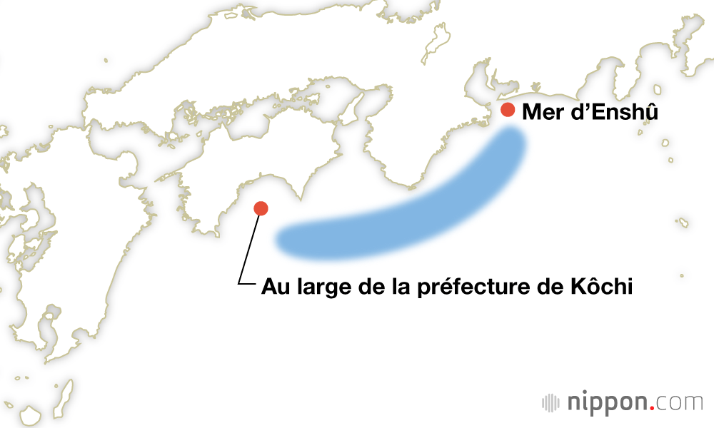 Zone épicentrale : vaste zone allant du large des côtes d’Enshû au large de la préfecture de Kôchi.