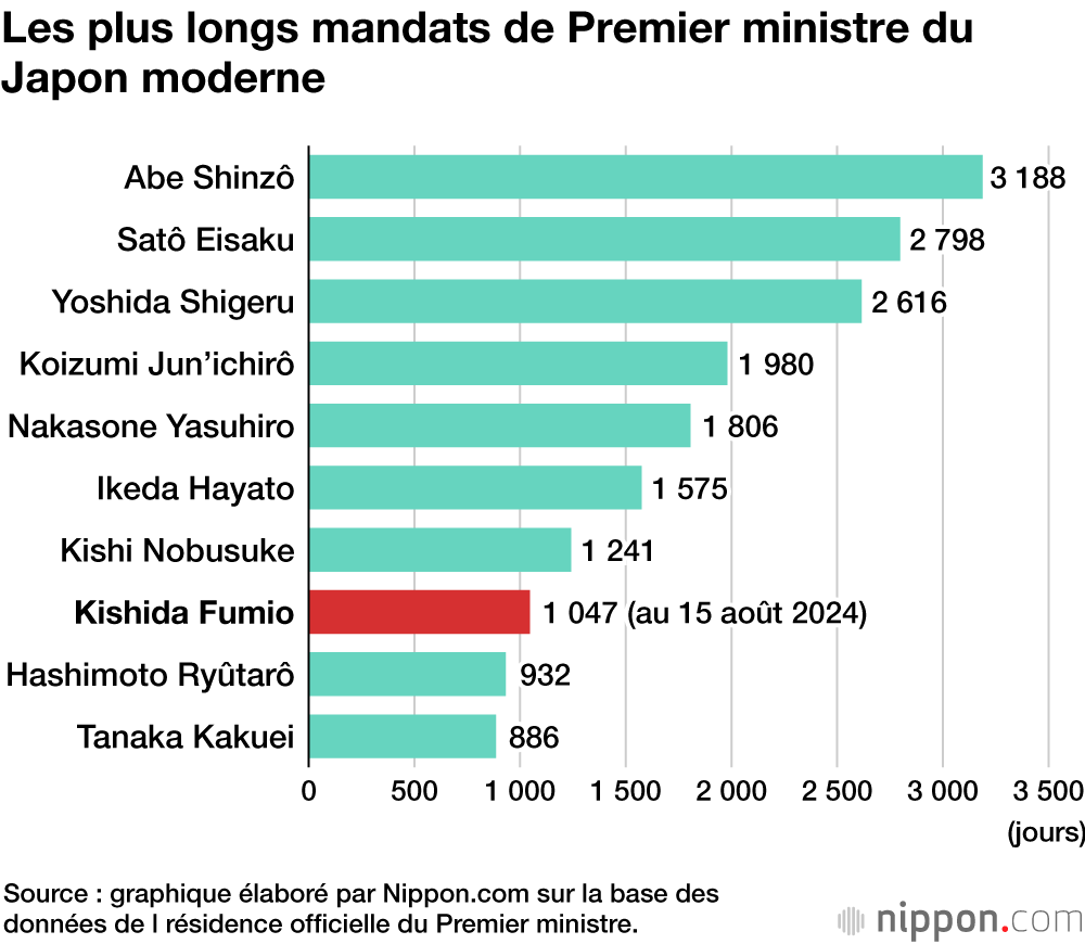 Kishida est à son poste depuis le 4 octobre 2021, son mandat a donc dépassé les 1 000 jours.