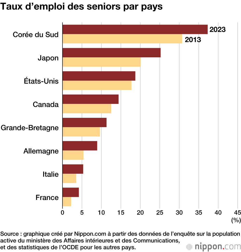 Le nombre de travailleurs âgés au Japon et leur taux d’emploi par rapport à d’autres pays