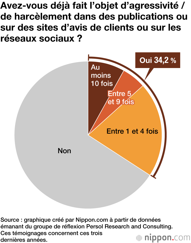 34,2 % des personnes interrogées ont dit avoir reçu des messages agressifs sur des sites d’avis de clients ou des réseaux sociaux au cours des trois dernières années et 13,5 % ont indiqué avoir été victimes de ce type de comportement au moins cinq fois.