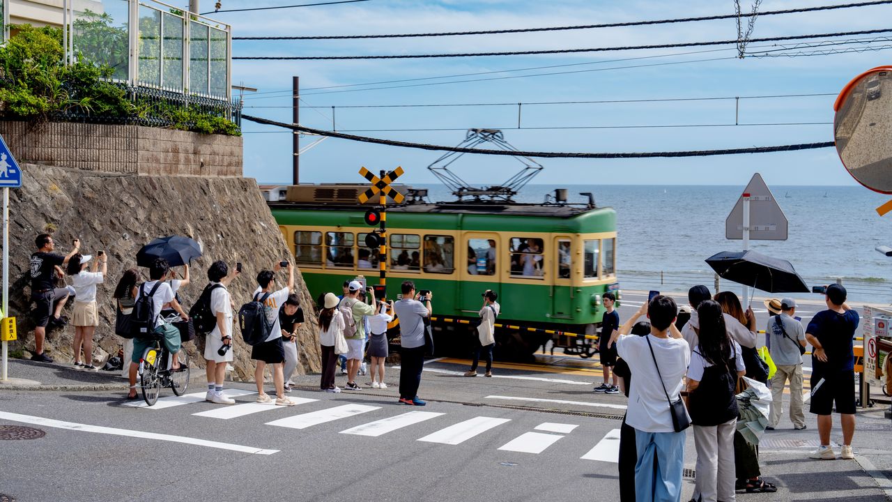 (Photo de titre : le passage à niveau de la gare Kamakura-kôkômae sur la ligne Enoden pris d’assaut par les touristes. Jiji)