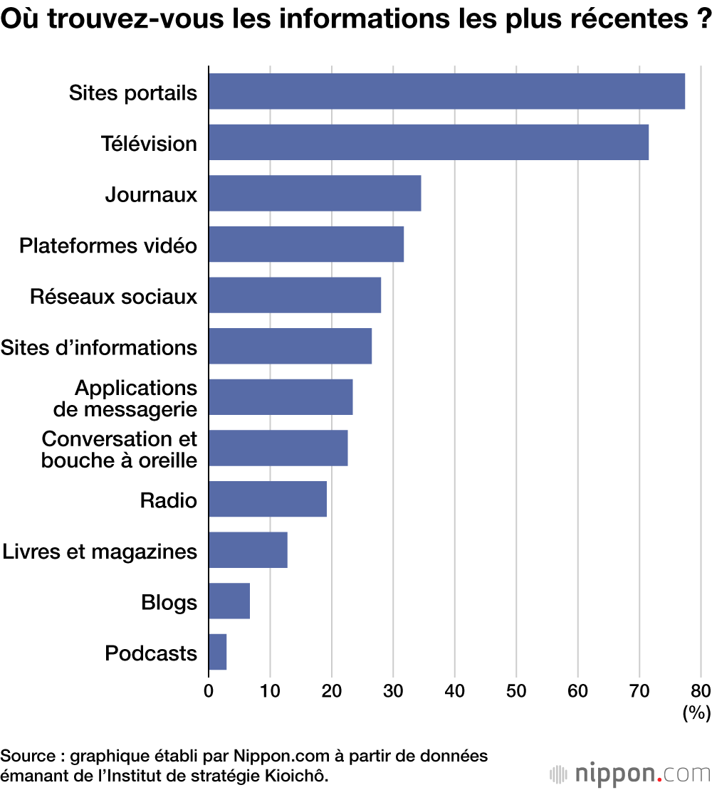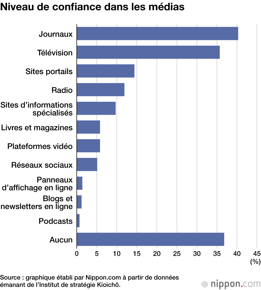 En quel média avez-vous le plus confiance ? L’Institut de stratégie Kioichô, basé à Tokyo, a mené une enquête en ligne auprès de 1 000 Japonais âgés de 18 ans et plus. Les réponses multiples étaient possibles.