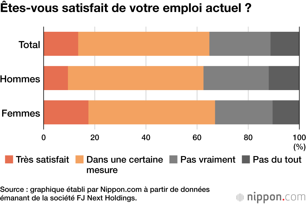 Dans l’ensemble, 6,8 % des personnes interrogées ont déclaré être « très intéressées » par les services d’une agence de démission, et 21,8 % « dans une certaine mesure », soit environ 30 % au total. Cependant, plus de 60 % des personnes ont confié être « satisfaites de leur emploi actuel », ce pourcentage étant légèrement supérieur chez les femmes (67 %) que chez les hommes (62,5 %).