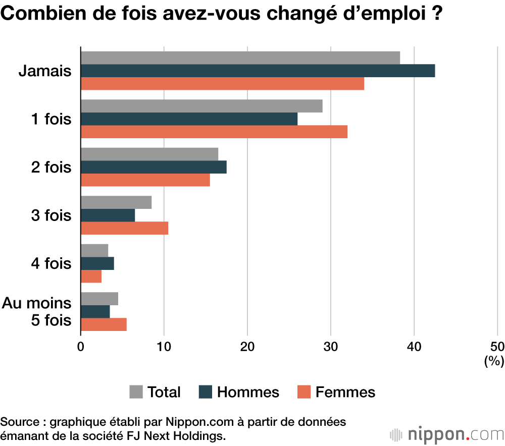 Cette étude s’est également intéressée aux raisons qui poussent un employé à changer de travail. Jusqu’à trois réponses étaient possibles. « Obtenir un salaire plus élevé » était la réponse la plus fréquemment donnée (64,5 %), suivi de « améliorer ses compétences » (38,3 %) et de « améliorer son équilibre travail / vie privée » (27,3 %). Par ailleurs, 38,3 % des personnes interrogées ont confié ne jamais avoir changé d’emploi. Les autres ont déclaré l’avoir fait au moins une fois, dont plus de 30 % au moins deux fois. Pour la société FJ Next Holdings, « changer d’emploi est devenu normal à l’époque actuelle ».
