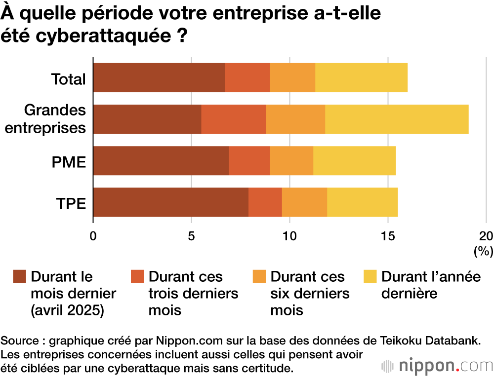 Une enquête menée entre le 19 et le 31 mai 2025 par l’Institut de recherche Teikoku Databank auprès de 10 645 entreprises japonaises a montré qu’un tiers d’entre elles s’étaient déjà confrontées à une cyberattaque.
