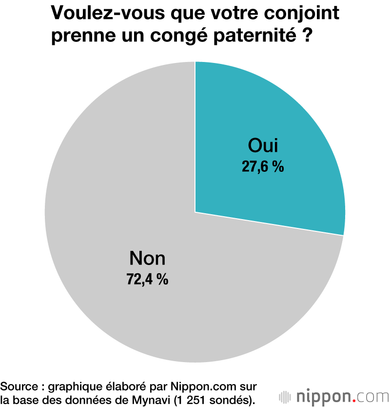 Un sondage conduit par la société de ressources humaines Mynavi auprès de femmes mariées âgées de 20 à 59 ans travaillant à temps partiel a révélé que 72,4 % d’entre elles ayant des enfants et dont le mari n’avait jamais demandé de congé paternité ne souhaitaient pas que leur conjoint prenne ce congé.