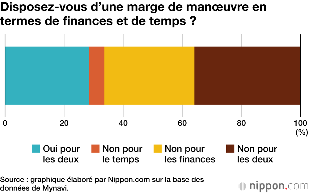 36 % des femmes interrogées ont répondu qu’elles n’avaient aucune marge de manœuvre ni au niveau des finances ni au niveau du temps, un chiffre qui est passé à 52,6 % chez les femmes ayant des enfants en âge préscolaire.