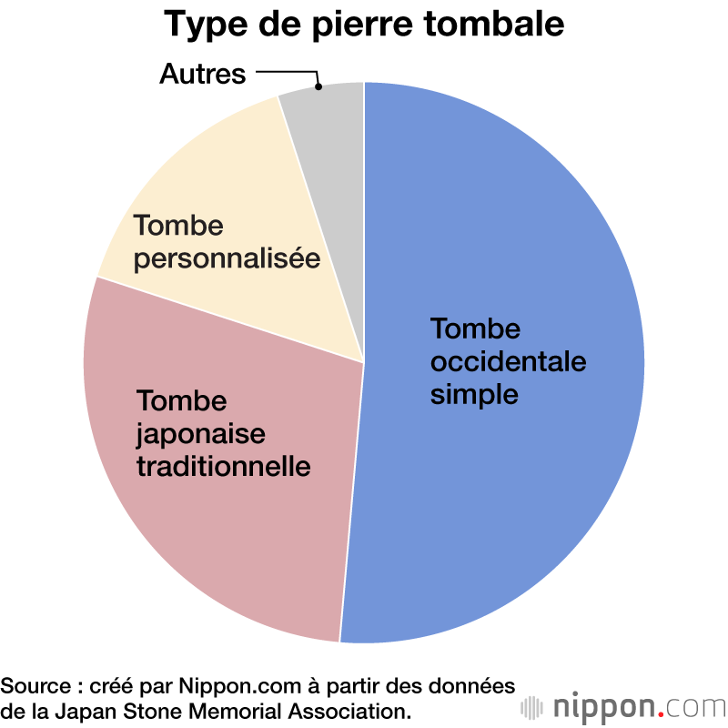 Le modèle le plus courant, choisi par 51,6 % des répondants, est la pierre tombale occidentale simple, en hausse de 9,4 points par rapport à l’enquête de 2016. Les tombes japonaises traditionnelles sont, elles, choisies par 28,5 %, en baisse de 9,7 points.