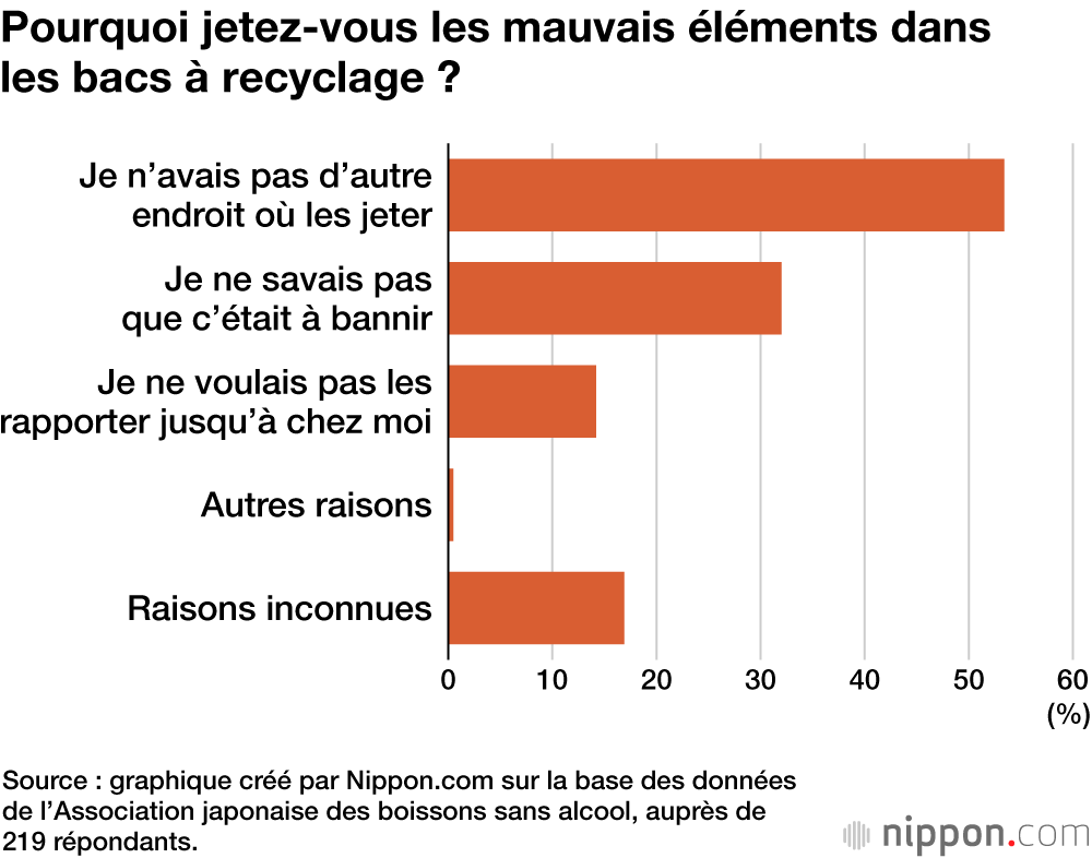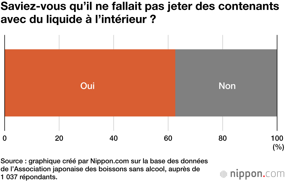 L’enquête a aussi montré que 62,6 % des personnes interrogées savaient que les bouteilles en plastique et les canettes recyclables ne doivent pas contenir de résidus liquides. De plus, 55,3 % savaient que, si elles en contiennent, elles ne peuvent pas être recyclées, ce qui pose des problèmes aux usines de recyclage.