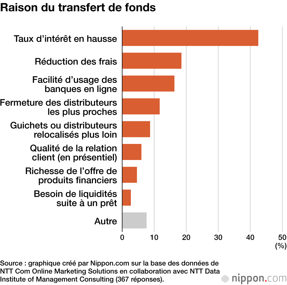 Au total, 42,5 % des personnes interrogées indiquent avoir fait un transfert de fonds car le taux d’intérêt avait augmenté. Les épargnants sont donc sensibles au taux d’intérêt, ils ont réagi dès que le Japon a tourné la page de sa longue période de taux d’intérêt négatif.