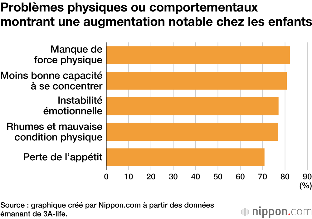Des enseignants ont indiqué que ce type de changements dans le mode de vie des enfants entraîne un manque de force physique (82,2 %), une moins bonne capacité à se concentrer (80,8 %) et une instabilité émotionnelle accrue (77,1 %).