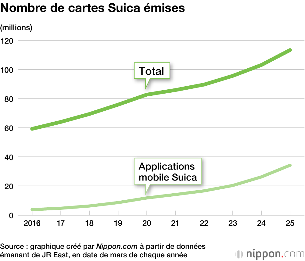 - Nombre de magasins acceptant la carte Suica : 2,2 millions (en septembre 2025)