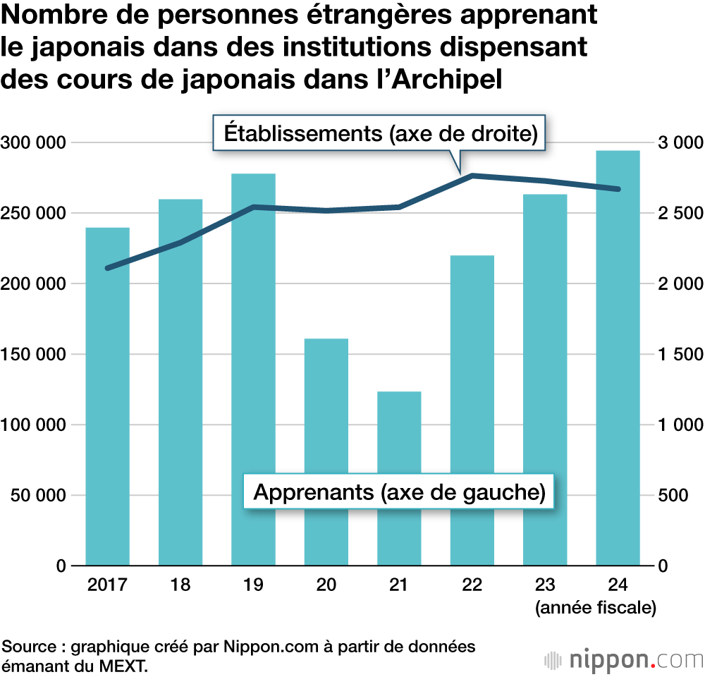 - Enquête sur le nombre d’apprenants de la langue japonaise au Japon pour l’année scolaire 2024 (en japonais) menée par le ministère de l’Éducation, de la Culture, des Sports, des Sciences et de la Technologie.