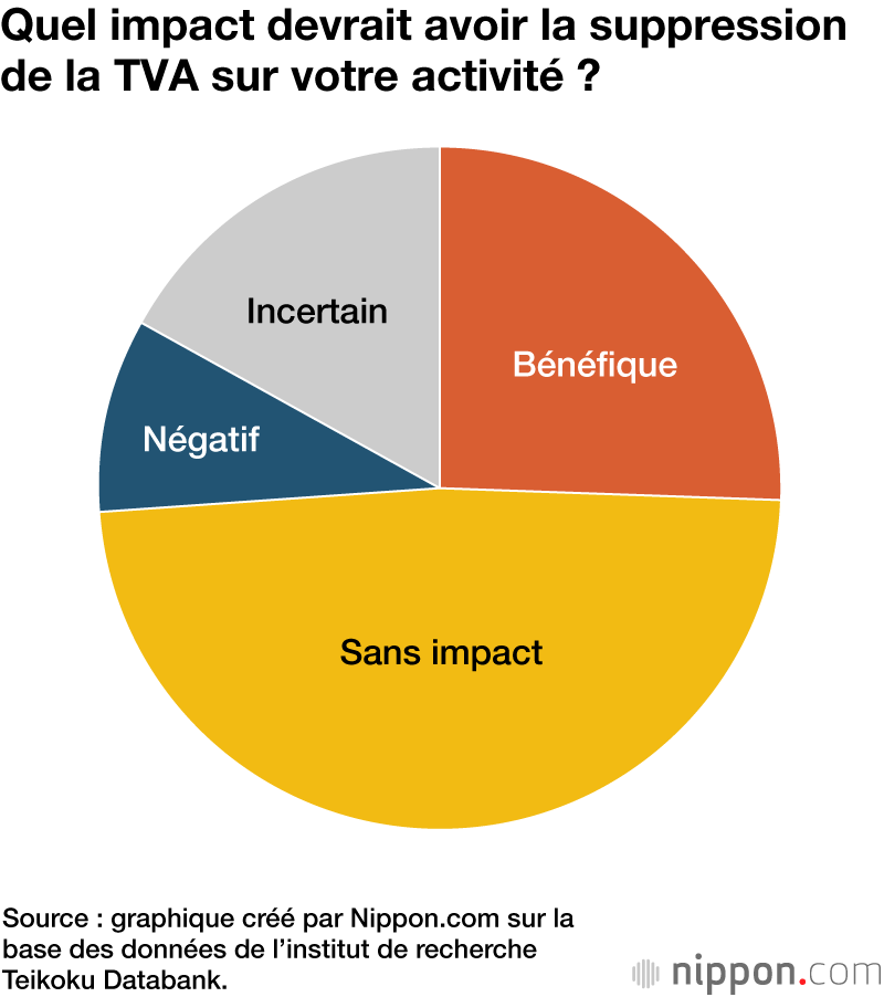 Enfin, l’enquête menée par l’institut Teikoku Databank auprès de 1 546 entreprises de tout l’Archipel, montre que seulement 25,7 % des sondés estiment qu’une réduction de la TVA sur l’alimentation leur sera « bénéfique », quand 48,2 % pensent qu’elle n’aura « aucun impact particulier ».