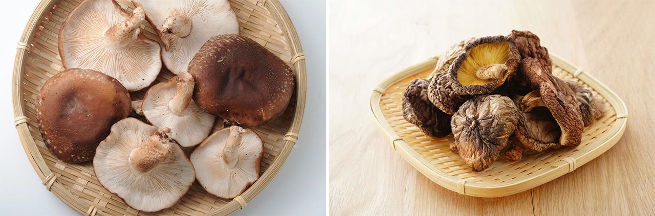 L’étymologie du mot kinoko, littéralement « enfant de l’arbre », proviendrait du fait que les champignons les plus charnus poussent souvent sur et autour des arbres, notamment sur les troncs en décomposition ou âgés. Le climat humide du Japon est propice à la prolifération des champignons dans tout l’Archipel. S’il en existe plus de 5 000 variétés, une poignée seulement, soit une centaine d’espèces, sont comestibles. Frais ou séchés, les champignons sont utilisés dans les gastronomies du monde entier.