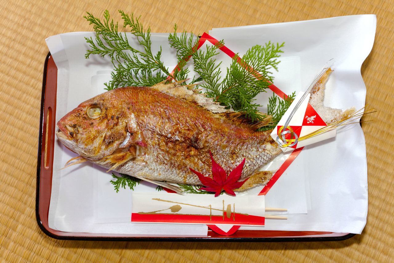 La dorade (tai) servie entière avec la tête la queue est appelée medetai, un terme qui signifie également « joyeux ». C’est pourquoi c’est un poisson que l’on déguste souvent pendant les fêtes.