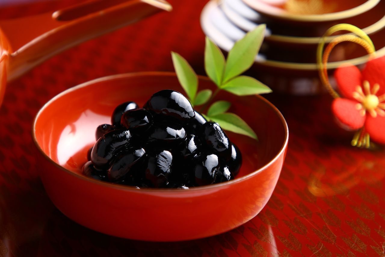 Un jeu de mots entre mame (graine) et mamemameshiku, qui signifie « travailler avec ardeur et diligence ». Les kuromame sont faits de graines de soja noires bouillies longtemps dans de la sauce soja et du sucre. Le soja noir noirs est riche en vitamine B, qui augmente résistance aux infections hivernales.