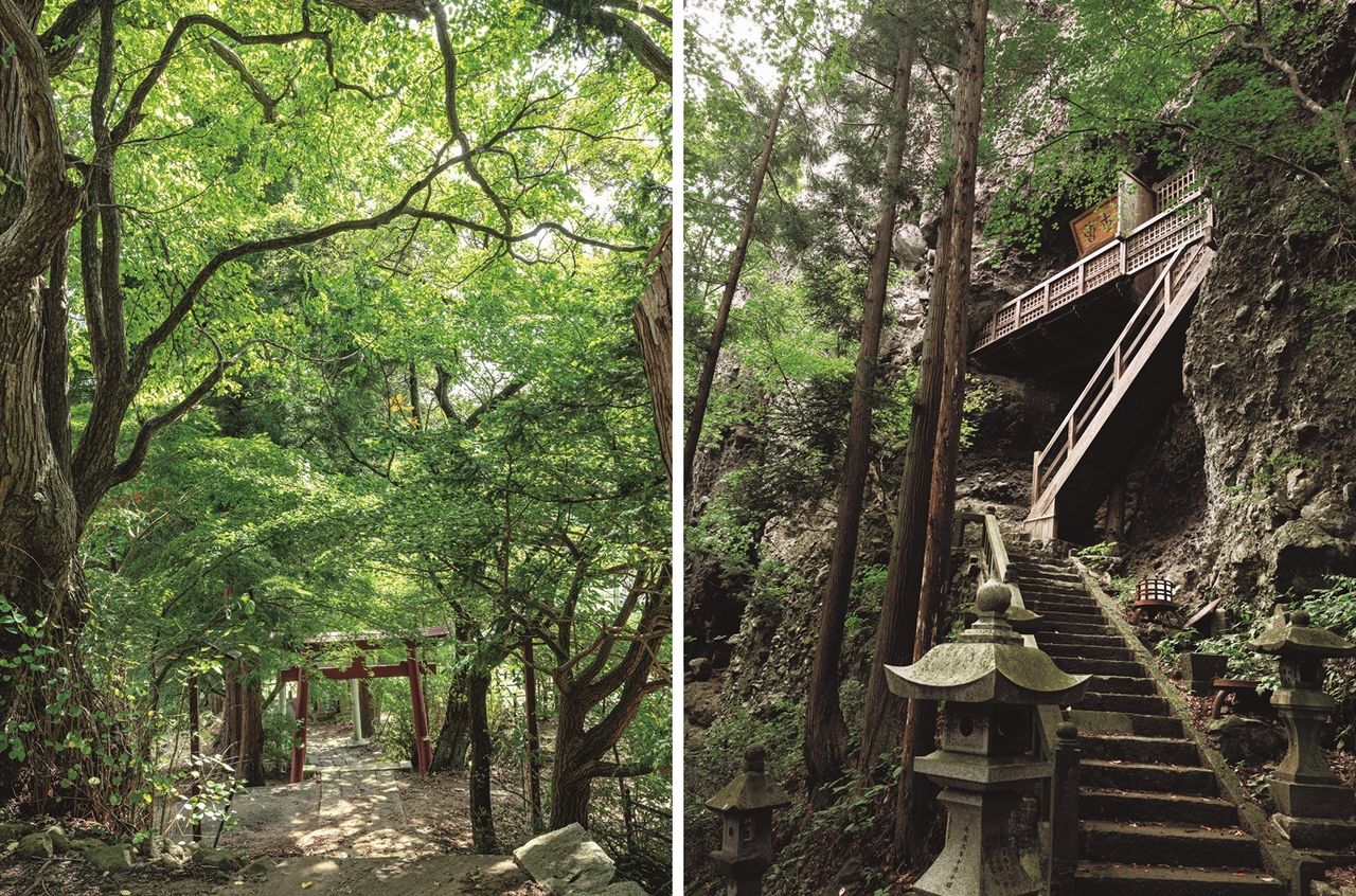 Le chemin des fidèles et l’escalier qui mène à Oku-no-in, la partie la plus reculée de Torigoe Kannon. (© Arimoto Yayoi)