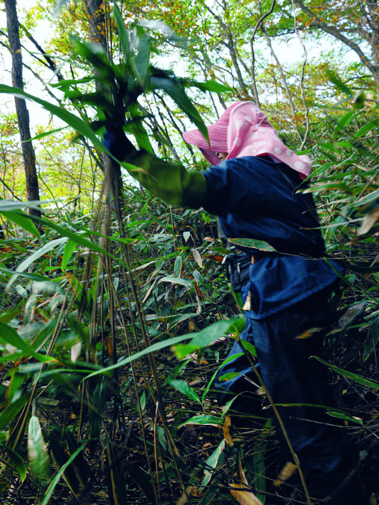 La récolte du suzutake en forêt (© Arimoto Yayoi)