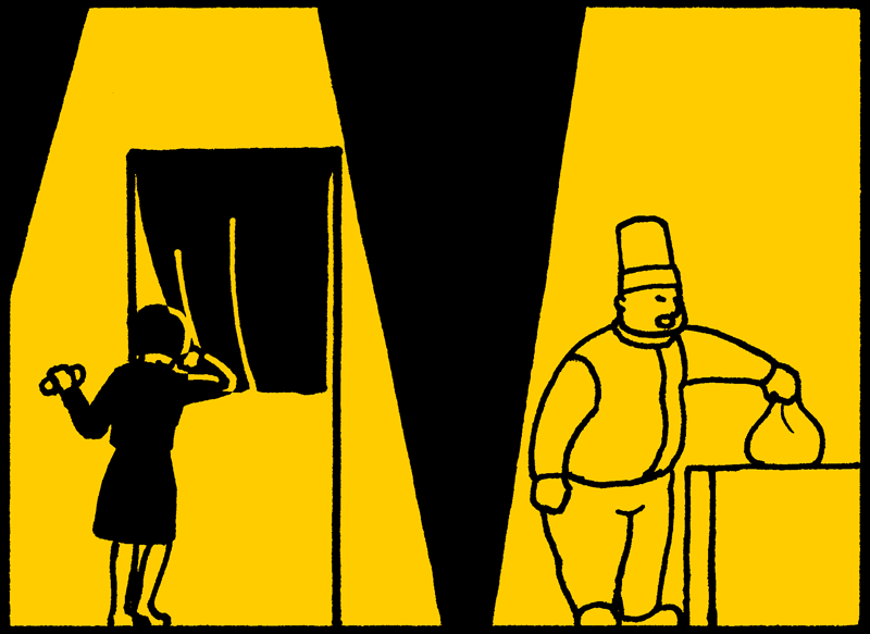 Noriko a pris le pain puis est partie voir son père à la boulangerie où il travaillait.