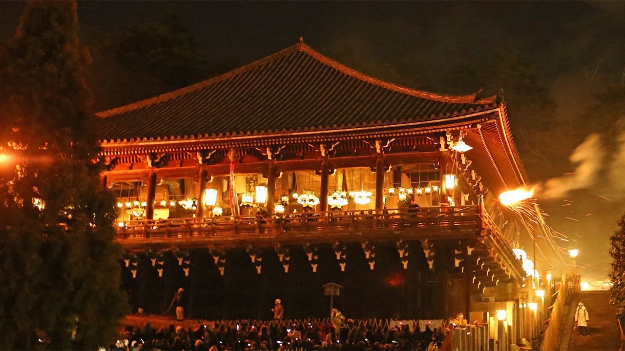 Du 1er au 14 mars, dans les temples de tout le Japon, on donne une cérémonie bouddhique appelée « Shuni-e ». Au Tôdai-ji de Nara, ce rite est connu sous le nom de « Omizutori ». Les moines apportent d’énormes torches enflammées dans le pavillon du Nigatsu-dô puis les agitent du balcon pour répandre de grandes gerbes d’étincelles qui sont censées procurer la santé aux fidèles amassés en bas de l’édifice.