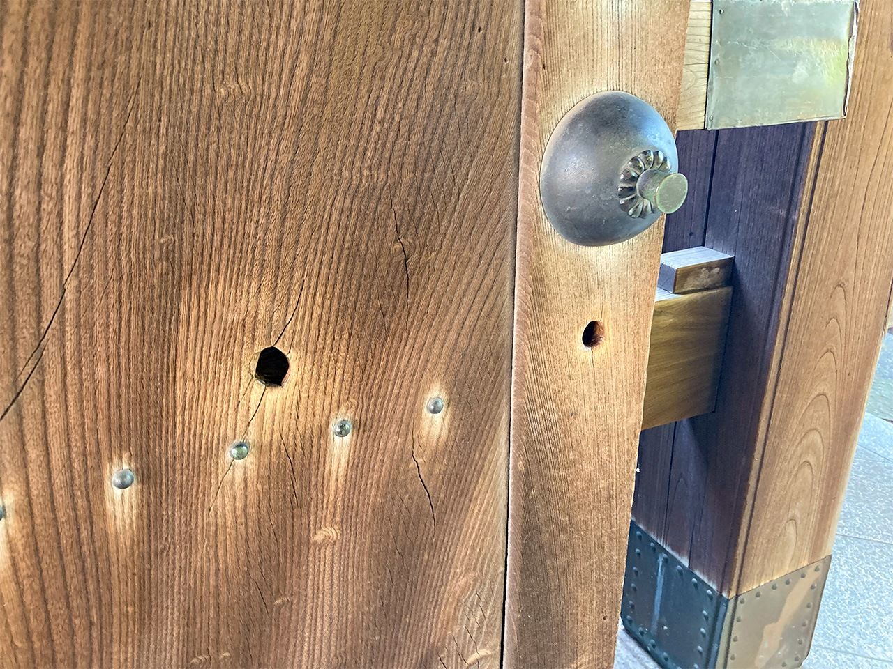 Les impacts de balles à Kyôô-ji rappellent le sanglant conflit marquant le déclin du Japon pré-moderne.