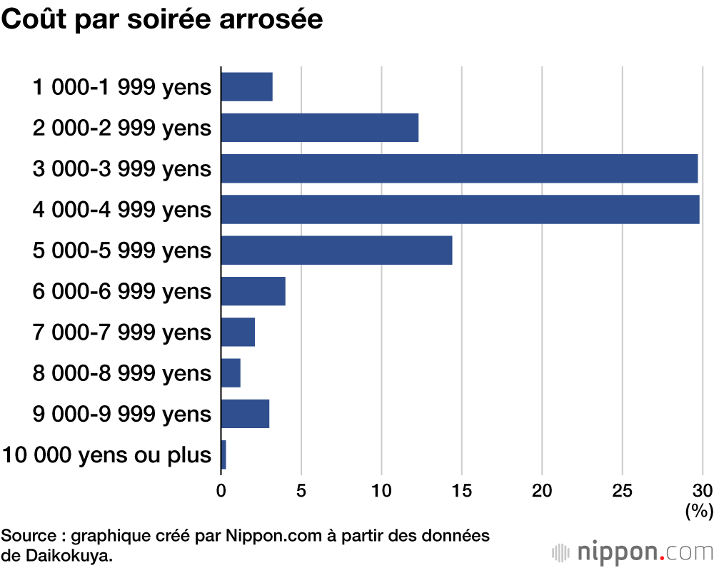 En février 2024, le ministère de la Santé, du Travail et des Affaires sociales a publié ses premières recommandations officielles sur les risques liés à la consommation de produits alcoolisés. Il y est indiqué que l’absorption de 20 grammes d’alcool (soit l’équivalent d’une canette de 500 ml de bière) augmente déjà le risque de cancer colorectal. Cette prise de conscience des conséquences sanitaires des soirées alcolisées est aujourd’hui partagée par toutes les générations. D’après l’enquête menée par Daikokuya, les salariés participent en moyenne à 17 soirées liées au travail par an, et dépensent chaque fois 4 237 yens, ce qui constitue un total d’environ 6 002 yens par mois. L’inflation observée depuis 2024 pourrait également inciter nombre d’employés à faire l’impasse sur ces événements et à consacrer leur budget à d’autres priorités.