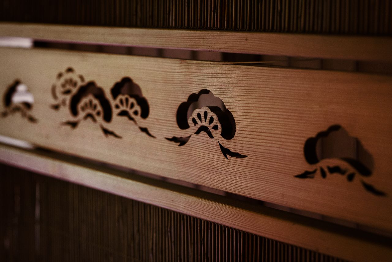 À l’intérieur, les panneaux shôji projettent de délicates ombres sur l’alcôve tokonoma. Si, un jour, la chance vous est donnée de visiter une maison traditionnelle, prenez votre temps pour admirer les moindres détails : les portes coulissantes fusuma, les linteaux ajourés ranma, ou encore les yukimi shôji, ces panneaux de papier coulissants dont la partie inférieure se relève pour offrir une vue relaxante sur le jardin. Juste à l’entrée, une fenêtre ronde s’orne d’un motif porte-bonheur représentant un filet de pêche lancé dans l’eau. Tous ces éléments témoignent non seulement d’un artisanat d’une grande finesse, mais aussi du mode de vie aisé de la famille qui habitait jadis ces lieux.