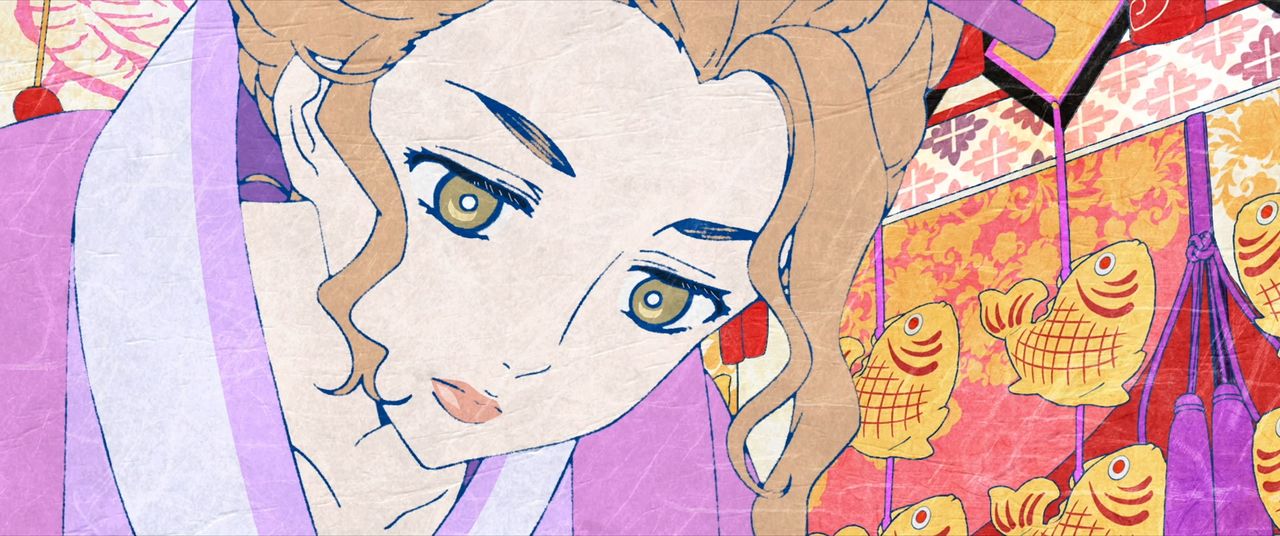 Les textures inspirées du papier washi ajoutent une autre couche d’unicité à l’esthétique du film. Du véritable papier japonais a été utilisé comme filtre d’écran, mais la palette de couleurs diffère subtilement de celle des ukiyo-e traditionnels. Le cadre somptueux des ôoku, par exemple, présente des teintes plus saturées que celles de la série télévisée, créant un visuel éclatant qui semble particulièrement plaire aux spectateurs étrangers.