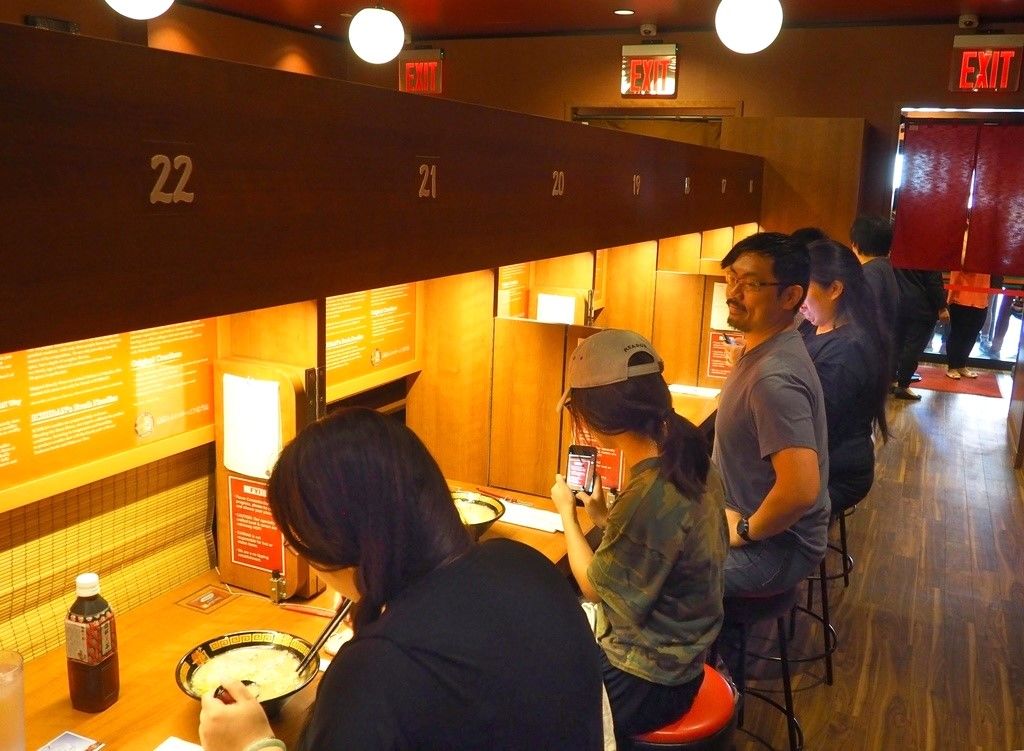 Ichiran, une chaîne de restaurants très prisée des étrangers en voyage sur l’Archipel, a exporté ses restaurants à l’international. Ce style de comptoir séparé par des panneaux a fait un buzz quand il fut introduit au Japon pour la première fois. (Kyôdô)